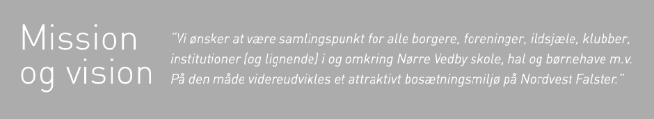 - At godt naboskab og sammenhold for alle borgere bosiddende på Nordvest Falster fremmes, og skal sikre aktiveringstiltag for alle generationer.